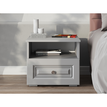 - Прикроватная тумба Аврора выполнена в классическом стиле. Стильная фрезеровка и изящная ручка подчеркивают элегантный вид модели. Комбинированное наполнение позволяет удобно расположить рядом с кроватью вещи, которые часто нужны перед сном и после пробуждения. Характеристики: Материал корпуса: ЛДСП. Материал фасада: МДФ, окрашенная лаком. Материал ручки: металл. Тип направляющих: шариковые полного выдвижения. Обратите внимание, преимущество данной коллекции — крашеные МДФ-фасады, покрытые матовым лаком. Они отличаются прочностью, экологичностью и уникальным внешним видом благодаря глубокому проникновению краски в структуру плиты. Матовая текстура без «пальчикового» эффекта придает мебели особую эстетику, а также обеспечивает легкий уход и долговечность.