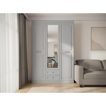 - Распашной шкаф Аврора позволит удобно разместить любые предметы гардероба благодаря продуманному наполнению. Для комфортной эксплуатации дверцы оснащены петлями с доводчиком, а ящики — направляющими полного выдвижения. Классический стиль модели подчеркивают фасады с фрезеровкой и изящные ручки. Характеристики: Материал корпуса: ЛДСП. Материал фасадов: МДФ, окрашенная лаком, зеркало. Материал ручек: металл. Тип штанги: продольная. Тип направляющих: шариковые полного выдвижения. Ориентация сборки: только так, как показано на изображении. Петли оснащены доводчиками. Обратите внимание, преимущество данной коллекции — крашеные МДФ-фасады, покрытые матовым лаком. Они отличаются прочностью, экологичностью и уникальным внешним видом благодаря глубокому проникновению краски в структуру плиты. Матовая текстура без «пальчикового» эффекта придает мебели особую эстетику, а также обеспечивает легкий уход и долговечность.
