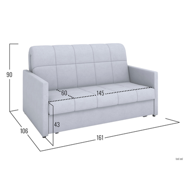 - Прямой диван Олаф — практичная модель с универсальным дизайном. Диван можно установить не только вдоль стены, но и в любой точке комнаты. Оптимальные высота и глубина посадочного места, а также удобный угол наклона спинки превращают диван в комфортное место отдыха, при этом узкие подлокотники экономят пространство, сохраняя функциональность модели. Диван легко раскладывается благодаря простому и надежному механизму трансформации, образуя ровное спальное место. Металлокаркас обеспечивает прочность и устойчивость к нагрузкам, а высокий матрас идеально подходит для ежедневного сна и может сравниться по комфорту с полноценной кроватью. Характеристики: Размер спального места: 145х200, 160х200 см. Размер спального места в сложенном виде (ВхШхГ): 145 х 60 см / 160 х 60 см. Механизм трансформации: аккордеон. Нагрузка на одно спальное место: 120 кг. Нагрузка на одно посадочное место: 80 кг. Посадочное место (ВхГ): 43 х 60 см. Материал основания: металлическая рама с ламелями. Наполнитель: пенополиуретан 8 см. Габариты дивана общие в разложенном виде (ВхШхГ): 44 х 161 х 215 см / 44 х 173 х 215 см. Высота спинки от посадочного места: 44 см. Размер подлокотника (ВхШхГ): 60 х 8 х 106 см. Тип каркаса: металлический. Материал ножек: пластик. Высота ножек: 3,5 см. Размер ящика для белья (ВхШхГ): 12 х 89 х 50 см / 12 х 102 х 50 см. Преимущества: механизм трансформации «Аккордеон» — в разложенном виде предоставляет ровное и удобное спальное место без стыков. Чтобы трансформировать диван, нужно поднять сиденье вверх до щелчка и вытянуть вперед до упора. Механизм компактный, прочный и долговечный. Подходит для ежедневного использования; металлический каркас — выдерживает высокие нагрузки, продлевает срок службы механизма и сохраняет прочность даже при ежедневном использовании; анатомическое основание — металлическая рама с гибкими ламелями точечно распределяет нагрузку и усиливает анатомический эффект спального места; съемный чехол — можно снять для химчистки, ремонта или замены на новый, сохранив при этом любимый диван; комфортный сон и защита стены — защищает спящего от соприкосновений с холодной стеной, а настенное покрытие — от потертостей и пятен.