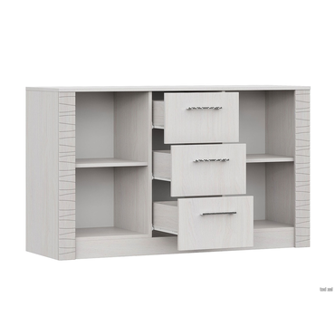 - Комод Гамма функционально дополнит систему хранения в современном интерьере. Комбинированное наполнение предусматривает два отделения с полками за распашными дверцами и три выдвижных ящика. На широкой столешнице можно разместить сувениры или горшки с комнатными растениями. Характеристики: Материал корпуса: ЛДСП 16 мм. Материал фасадов: ЛДСП 16 мм, МДФ 16 мм. Материал ручек: пластик. Тип направляющих: роликовые. Максимальная нагрузка на ящик и полку: 5 кг.