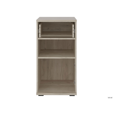 - С компактным, но очень удобным комодом Альянс легко организовать хранение небольших вещей. В открытой нише удобно держать предметы, которые часто нужны под рукой, а в ящике и за дверцей можно спрятать содержимое от пыли и посторонних глаз. Глянцевая поверхность в сочетании с текстурой дерева смотрятся очень стильно и уютно. Характеристики: Материал: ЛДСП 16 и 22 мм. Материал ручек: пластик. Внутренний размер ящика (ВхШхГ): 14 х 40 х 36 см. Тип направляющих: шариковые. Дверца оснащена доводчиком.