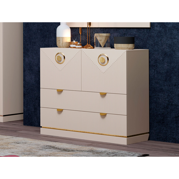 - Комод Капри станет стильным и функциональным дополнением интерьера в стиле модерн. Фасады с декоративной фрезеровкой изготовлены из качественного экологичного материала и дополнены изящными ручками в оттенке золота. Вместительные выдвижные ящики на шариковых направляющих обладают плавным бесшумным ходом. Характеристики: Материал корпуса: ЛДСП. Материал фасадов: МДФ в пленке ПВХ. Материал ручек: металл. Дверцы оснащены петлями с доводчиками. Тип направляющих: шариковые 45/35 см.