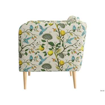 - С оригинальным креслом Прайм интерьер мгновенно преобразится и заиграет новыми красками. Яркая обивка с растительным принтом идеально сочетается с высокими ножками из массива. Такой дизайн делает обстановку ближе к природе и наполняет ее индивидуальностью. Съемная подушка позволяет регулировать глубину сиденья для большего комфорта. Характеристики: Нагрузка на одно посадочное место: 110 кг. Посадочное место (ВхШхГ): 42 х 59 х 49 см. Посадочное место без подушек (ШхГ): 59 х 60 см. Приспинная подушка (ВхШхГ): 36 х 56 х 16 см. Размер подлокотников (ВхШхГ): 51 х 6 х 74 см. Высота без подушек: 71 см. Ширина спинки: 56 см. Наполнитель: пенополиуретан. Наполнитель подушек: чипсы пенополиуретана, холлофайбер. Тип каркаса: деревянный. Материал ножек: береза. Высота ножек: 20 см. Преимущества: высокие ножки: ножки упрощают уборку под креслом и делают конструкцию визуально легче; ткань со всех сторон: кресло со всех сторон обит одним материалом, поэтому будет эстетично смотреться даже в центре комнаты.