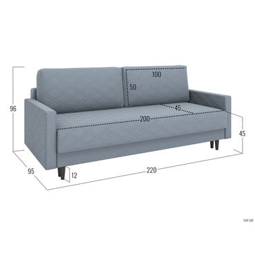 - Прямой диван Джесси — удачное решение для оформления уютного интерьера. Со всех сторон используется мягкая обивка с эффектной строчкой. Модель можно установить как вдоль стены, так и в любой точке комнаты, чтобы зонировать пространство. Объемные подушки позволяют расположиться с максимальным комфортом, скорректировав глубину посадки. На время сна диван легко раскладывается, не повреждая напольное покрытие. В разложенном виде образуется ровное спальное место без лишних стыков и перепадов высоты. Бельевой короб расширяет возможности для хранения. Характеристики: Размер спального места: 145 х 200 см. Размер спального места в сложенном виде (ШхГ): 198 х 94 см. Механизм трансформации: еврокнижка. Нагрузка на одно спальное место: 120 кг. Нагрузка на одно посадочное место: 100 кг. Посадочное место (ВхГ): 45 х 49 см. Размер ящика (ВхШхГ): 19 х 97,5 х 72,5 см. Приспинная подушка (ВхШ): 50 х 100 см. Габариты дивана общие в разложенном виде (ВхШхГ): 63 х 220 х 145 см. Высота спинки от посадочного места: 50 см. Размер подлокотников (ВхШхГ): 63 х 11 х 80 см. Материал основания: ДСП, Фанера. Наполнитель: независимый пружинный блок, Skyfiber. Наполнитель подушек: холкон. Тип каркаса: деревянный. Материал ножек: пластик. Высота ножек: 12 см. Преимущества: механизм трансформации «Еврокнижка» — надежный и простой в использовании механизм. Спальное место без стыков, которое располагается вдоль. Чтобы трансформировать диван, нужно выдвинуть сиденье вперед и опустить спинку на освободившееся место. Подходит для ежедневной эксплуатации; ткань со всех сторон — диван со всех сторон обит одним материалом, поэтому будет эстетично смотреться даже в центре комнаты. Идеален для зонирования пространства и больших помещений; высокие ножки — упрощают уборку под диваном и делают конструкцию визуально легче; ящик для хранения — в просторном коробе уместится все: от постельного белья и объемных подушек до сезонных вещей и коробок с обувью; независимый пружинный блок — каждая пружина находится в отдельном тканевом чехле и не связана с другими. Это обеспечивает точечное распределение нагрузки и оптимальную поддержку каждой части тела. Подходит для ежедневного сна.