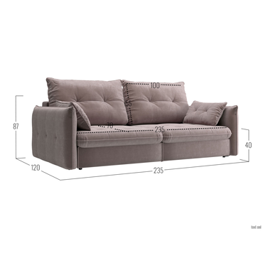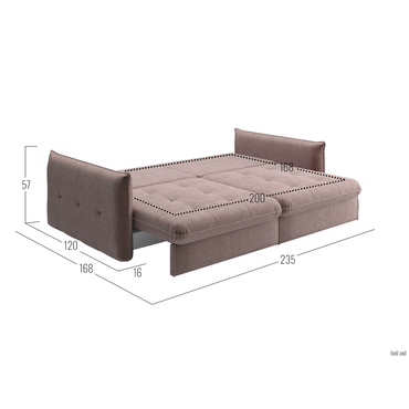- Прямой диван Патрис гармонично дополнит любой интерьер и станет отличным решением для комфортного отдыха. Плавные изгибы подчеркнуты декоративным кантом. Подушки, украшенные каретной стяжкой, помогут регулировать глубину сиденья и занять наиболее удобное положение. Гладкий шелковистый материал обивки приятен на ощупь и обладает эффектом дорогой матовой фактуры. Модель безупречно выглядит со всех сторон и подойдет для зонирования комнаты. При помощи механизма трансформации диван легко превращается в ровное спальное место, по удобству сравнимое с полноценной кроватью. Вместительный короб позволит хранить необходимые постельные принадлежности. Характеристики: Размер спального места: 168х200 см. Механизм трансформации: двухсекционный тик-так. Нагрузка на одно спальное место: 120 кг. Нагрузка на одно посадочное место: 120 кг. Посадочное место (ВхГ): 40 х 70 см. Размер подлокотников (ВхШ): 57 х 16 см. Декоративные подушки (ВхШ): 60 х 33 см (2 шт.). Габариты приспинных подушек: 100 х 55 х 25 см (2 шт.). Размер в разложенном виде: 57 х 235 х 168 см. Габариты ящика для белья (ВхШхГ): 19 х 102 х 97 см. Высота без подушек: 68 см. Высота спинки от сиденья: 26 см. Материал основания: ДСП, ДВП, ДВПО, ЛДСП, ФК. Наполнитель: независимый пружинный блок. Наполнитель подушек: пух, крошка. Материал каркаса: ДСП, ДВП, ДВПО, ЛДСП, ФК. Материал ножек: пластик. Высота ножек: 2,5 см. Преимущества: механизм «двухсекционный тик-так» — система трансформации «тик-так» позволяет быстро и легко разложить диван. Сиденье нужно немного приподнять, потянуть вверх и на себя, а далее опустить спинку. Таким образом, получается ровное и просторное спальное место; ткань со всех сторон — диван со всех сторон обит одним материалом, поэтому будет эстетично смотреться даже в центре комнаты. Идеален для зонирования пространства и больших помещений; независимый пружинный блок — каждая пружина находится в отдельном тканевом чехле и не связана с другими. Это обеспечивает точечное распределение нагрузки и оптимальную поддержку каждой части тела. Подходит для ежедневного сна; большое спальное место — в разложенном виде не уступает полноценной двуспальной кровати. Можно с комфортом смотреть телевизор всей семьей или в компании друзей; антикоготь — гладкая текстура ткани более устойчива к появлению зацепок, в отличие от материалов с выраженным плетением. Кроме того, она легко чистится от шерсти; подушки под спину — дополнительные подушки позволяют комфортно расположиться на диване, регулируя глубину посадки.