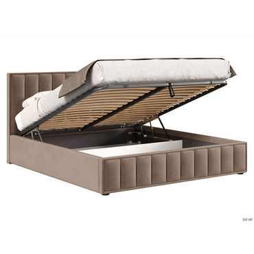 - В дизайне кровати с подъемным механизмом Шерон ПМ удачно сочетаются эстетика сдержанной роскоши, индивидуальность и практичность. Мягкая обивка создает атмосферу уюта, а основание с ламелями заботится о комфортном сне. Изюминка модели — повторяющийся декор, который используется в оформлении спинки и изножья. Вертикальные строчки подчеркивают симметрию и правильные линии кровати. Характеристики: Размер спального места: 140х200, 160х200, 180х200 см. Материал каркаса: ЛДСП, фанера. Материал обивки: велюр. Материал наполнителя: синтепон. Основание: анатомическое с подъемным механизмом. Обивка задней части спинки: тех.ткань. Высота ниши под матрас: 5 см. Высота каркаса: 31 см. Высота изголовья от основания: 68 см. Высота ножек: 3 см. Полезная высота короба: 19 см. Толщина царги: 4,5 см. Толщина изголовья: 5,5 см. Максимальная нагрузка на спальное место: 120 кг. Рекомендуемая высота матраса: 18-27 см. Ширина ламелей: 5 см. Расстояние между ламелями: 8 см. Количество ламелей: 28 шт. Преимущества: подъемный механизм — позволяет рационально использовать всё пространство под спальным местом, обеспечивая быстрый доступ ко вместительному коробу и полный обзор его содержимого. В отличие от выдвижных ящиков, не повреждает напольное покрытие; анатомическое основание — конструкция позволяет использовать кровать людям с большим весом за счет усиленной рамы основания и качественной фурнитуры. Повышает ортопедические свойства матраса и продлевает срок его службы, защищая от деформации. Обратите внимание, матрас в комплект не входит.