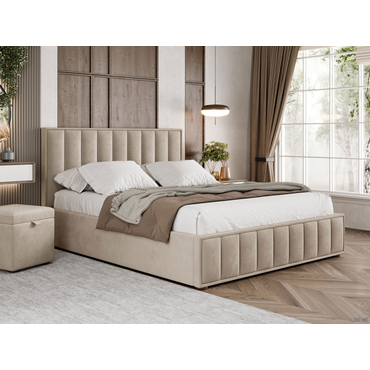 - В дизайне кровати с подъемным механизмом Шерон ПМ удачно сочетаются эстетика сдержанной роскоши, индивидуальность и практичность. Мягкая обивка создает атмосферу уюта, а основание с ламелями заботится о комфортном сне. Изюминка модели — повторяющийся декор, который используется в оформлении спинки и изножья. Вертикальные строчки подчеркивают симметрию и правильные линии кровати. Характеристики: Размер спального места: 140х200, 160х200, 180х200 см. Материал каркаса: ЛДСП, фанера. Материал обивки: велюр. Материал наполнителя: синтепон. Основание: анатомическое с подъемным механизмом. Обивка задней части спинки: тех.ткань. Высота ниши под матрас: 5 см. Высота каркаса: 31 см. Высота изголовья от основания: 68 см. Высота ножек: 3 см. Полезная высота короба: 19 см. Толщина царги: 4,5 см. Толщина изголовья: 5,5 см. Максимальная нагрузка на спальное место: 120 кг. Рекомендуемая высота матраса: 18-27 см. Ширина ламелей: 5 см. Расстояние между ламелями: 8 см. Количество ламелей: 28 шт. Преимущества: подъемный механизм — позволяет рационально использовать всё пространство под спальным местом, обеспечивая быстрый доступ ко вместительному коробу и полный обзор его содержимого. В отличие от выдвижных ящиков, не повреждает напольное покрытие; анатомическое основание — конструкция позволяет использовать кровать людям с большим весом за счет усиленной рамы основания и качественной фурнитуры. Повышает ортопедические свойства матраса и продлевает срок его службы, защищая от деформации. Обратите внимание, матрас в комплект не входит.