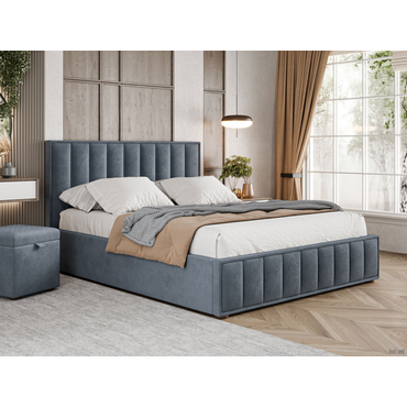 - В дизайне кровати с подъемным механизмом Шерон ПМ удачно сочетаются эстетика сдержанной роскоши, индивидуальность и практичность. Мягкая обивка создает атмосферу уюта, а основание с ламелями заботится о комфортном сне. Изюминка модели — повторяющийся декор, который используется в оформлении спинки и изножья. Вертикальные строчки подчеркивают симметрию и правильные линии кровати. Характеристики: Размер спального места: 140х200, 160х200, 180х200 см. Материал каркаса: ЛДСП, фанера. Материал обивки: велюр. Материал наполнителя: синтепон. Основание: анатомическое с подъемным механизмом. Обивка задней части спинки: тех.ткань. Высота ниши под матрас: 5 см. Высота каркаса: 31 см. Высота изголовья от основания: 68 см. Высота ножек: 3 см. Полезная высота короба: 19 см. Толщина царги: 4,5 см. Толщина изголовья: 5,5 см. Максимальная нагрузка на спальное место: 120 кг. Рекомендуемая высота матраса: 18-27 см. Ширина ламелей: 5 см. Расстояние между ламелями: 8 см. Количество ламелей: 28 шт. Преимущества: подъемный механизм — позволяет рационально использовать всё пространство под спальным местом, обеспечивая быстрый доступ ко вместительному коробу и полный обзор его содержимого. В отличие от выдвижных ящиков, не повреждает напольное покрытие; анатомическое основание — конструкция позволяет использовать кровать людям с большим весом за счет усиленной рамы основания и качественной фурнитуры. Повышает ортопедические свойства матраса и продлевает срок его службы, защищая от деформации. Обратите внимание, матрас в комплект не входит.