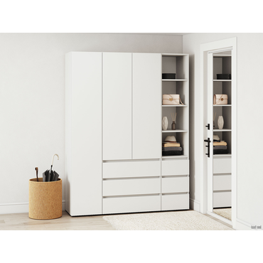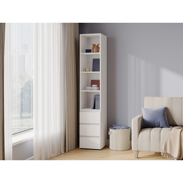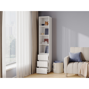 - Стеллаж Элли с ящиками — универсальная модель для квартиры или офиса. Лаконичный дизайн в сочетании с удобной системой хранения делает стеллаж актуальным решением для любого интерьера. На полках и в ящиках найдется место для любых нужных вещей: от предметов гардероба до книг и декора. Характеристики: Материал: ЛДСП. Максимальная нагрузка на полку: 5 кг. Требуется крепление к стене. Фурнитура входит в комплект. Тип направляющих: шариковые.