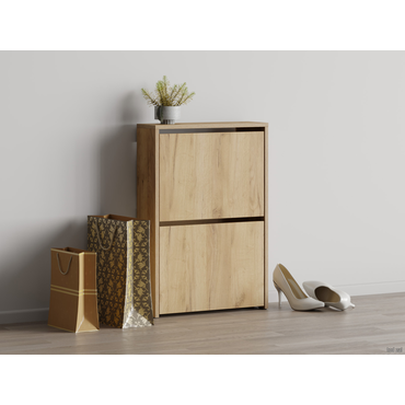 - Обувница Милан — удачное решение для небольшой прихожей, где на счету каждый сантиметр свободного пространства. Узкая модель с откидными полками поможет компактно разместить несколько пар обуви. Мебель оформлена в уютном древесном декоре и отлично сочетается с разными интерьерными стилями. Характеристики: Материал: ЛДСП. Механизм открывания: откидной с доводчиками. Вместимость: 4 пары.