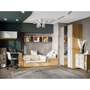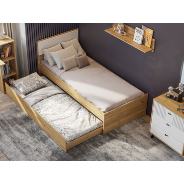- Односпальная кровать Милан придется по вкусу тем, кто ценит простые геометрические линии и лаконичность. Изголовье с декоративной накладкой придает модели индивидуальность, а древесная текстура добавляет спальне уюта. Основание расположено высоко над полом, поэтому под кроватью легко проводить уборку. Характеристики: Размер основного спального места (ШхГ): 90х200 см. Размер выкатного спального места (ШхГ): 80х190 см. Материал каркаса: ЛДСП, МДФ. Рекомендуемая высота матраса основного спального места: 17-19 см. Рекомендуемая высота матраса выкатного спального места: до 20 см. Высота ниши под матрас: 10 см. Высота каркаса: 41 см. Высота изголовья от основания: 40 см. Полезная высота короба: 19 см. Максимальная нагрузка на спальное место: 120 кг. Преимущества: анатомическое основание — повышает ортопедические свойства матраса и продлевает срок его службы, защищая от деформации. Рейки слегка пружинят при нагрузке, позволяя матрасу амортизировать движения человека, когда он ложится, встает или ворочается во сне. Конструкция позволяет использовать кровать людям с большим весом за счет усиленной рамы основания и качественной фурнитуры. дополнительное место хранения — модули для хранения постельных принадлежностей и других необходимых вещей позволяют рационально использовать жилое пространство и с легкостью поддерживать порядок в комнате. Обратите внимание, матрас в комплект не входит.