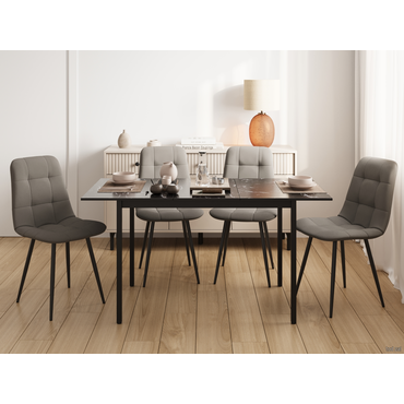 - Кухонный стол Маркус гармонично сочетает лаконичность и стильное оформление. Декор под мрамор придает модели элегантный вид. Стол компактен в сложенном виде, при этом легко раскладывается, если нужно разместить гостей. Характеристики: Материал столешницы: ЛДСП / стекло. Материал подстолья: ЛДСП / МДФ. Материал ножек: металл. Размер в разложенном виде (ВхШхГ): 75 х 150 х 70 см. Механизм раскладывания: центральная вставка. Максимальная нагрузка: 40 кг. Преимущества: центральная цельная вставка: надежная и устойчивая конструкция с дополнительным модулем, спрятанным в нише под основной столешницей. Для трансформации нужно раздвинуть в противоположные стороны половинки столешницы. Затем вынуть запасной модуль и вставить его в специальные пазы; влагостойкая поверхность столешницы: практичное и устойчивое к влаге покрытие рассчитано на долгие годы эксплуатации. Такая поверхность очень проста в уходе: пролитую жидкость достаточно промокнуть губкой или салфеткой; подходит для небольших помещений: в сложенном виде стол легко помещается даже в малогабаритной кухне, а при необходимости быстро трансформируется в более вместительную модель. Чтобы разложить стол, не требуется много времени и усилий. Механизм прост и надежен в эксплуатации. Обратите внимание, цвета изображений могут отличаться от реальных из-за особенностей цветопередачи.