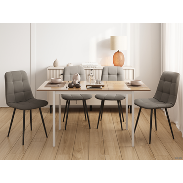 - Кухонный стол Маркус гармонично сочетает лаконичность и стильное оформление. Декор под мрамор придает модели элегантный вид. Стол компактен в сложенном виде, при этом легко раскладывается, если нужно разместить гостей. Характеристики: Материал столешницы: ЛДСП / стекло. Материал подстолья: ЛДСП / МДФ. Материал ножек: металл. Размер в разложенном виде (ВхШхГ): 75 х 150 х 70 см. Механизм раскладывания: центральная вставка. Максимальная нагрузка: 40 кг. Преимущества: центральная цельная вставка: надежная и устойчивая конструкция с дополнительным модулем, спрятанным в нише под основной столешницей. Для трансформации нужно раздвинуть в противоположные стороны половинки столешницы. Затем вынуть запасной модуль и вставить его в специальные пазы; влагостойкая поверхность столешницы: практичное и устойчивое к влаге покрытие рассчитано на долгие годы эксплуатации. Такая поверхность очень проста в уходе: пролитую жидкость достаточно промокнуть губкой или салфеткой; подходит для небольших помещений: в сложенном виде стол легко помещается даже в малогабаритной кухне, а при необходимости быстро трансформируется в более вместительную модель. Чтобы разложить стол, не требуется много времени и усилий. Механизм прост и надежен в эксплуатации. Обратите внимание, цвета изображений могут отличаться от реальных из-за особенностей цветопередачи.