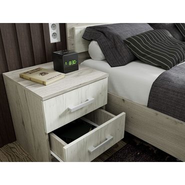 - Прикроватная тумба Феста — компактная и очень удобная модель с двумя выдвижными ящиками. Внутри можно спрятать любые личные вещи: от зарядки для телефона до футляра с очками. Строгий лаконичный дизайн отлично сочетается с другой мебелью в спальне. Характеристики: Материал: ЛДСП. Материал ручек: пластик. Тип направляющих: роликовые. Внутренний размер ящика (ВхШхГ): 11,2 х 31 х 33,4 см. Максимальная нагрузка на ящик: 2 кг.