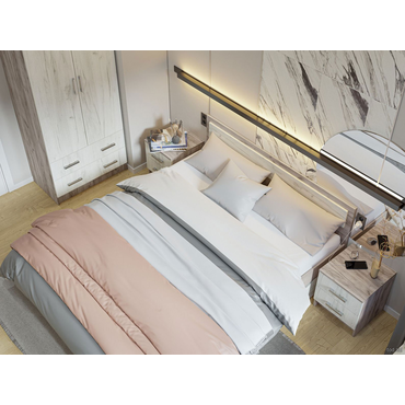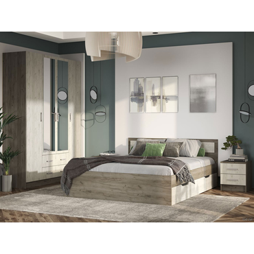 Двуспальная кровать Стендмебель Феста Дуб Крафт серый / Дуб Крафт белый С ящиками 140х200 см ,