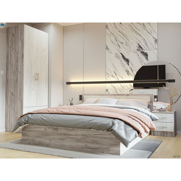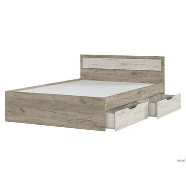 Двуспальная кровать Стендмебель Феста Дуб Крафт серый / Дуб Крафт белый С ящиками 160х200 см ,