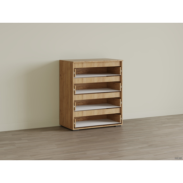 - В ящиках комода Элли удобно хранить любые вещи: от детских игрушек до постельного белья и аксессуаров. На фасадах нет выступающей фурнитуры, поэтому модель не перегружает интерьер лишними деталями. Благодаря универсальным габаритам комод отлично смотрится как в просторной комнате, так и небольшой прихожей. Характеристики: Материал: ЛДСП. Внутренние габариты ящика (ВхШхГ): 11 х 71,2 х 38,4 см. Тип направляющих: шариковые. Максимальная нагрузка на ящик: 2 кг.