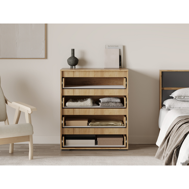 - В ящиках комода Элли удобно хранить любые вещи: от детских игрушек до постельного белья и аксессуаров. На фасадах нет выступающей фурнитуры, поэтому модель не перегружает интерьер лишними деталями. Благодаря универсальным габаритам комод отлично смотрится как в просторной комнате, так и небольшой прихожей. Характеристики: Материал: ЛДСП. Внутренние габариты ящика (ВхШхГ): 11 х 71,2 х 38,4 см. Тип направляющих: шариковые. Максимальная нагрузка на ящик: 2 кг.