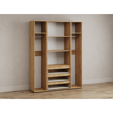 - Распашной шкаф Элли — простой способ разместить гардероб, сэкономив пространство комнаты. Благодаря небольшой глубине модель помещается даже в узком проходе, а продуманное наполнение помогает организовать удобное хранение повседневной одежды. Ящики и дверцы открываются за выступающий край фасада. Характеристики: Материал: ЛДСП. Тип направляющих: шариковые. Тип штанг: продольные. Внутренние габариты ящика (ВхШхГ): 11 х 72,6 х 38,4 см. Максимальная нагрузка на полку: 3 кг. Максимальная нагрузка на ящик: 2 кг. Ориентация сборки: универсальная. Высота опор: 2 см. Шкаф требует много места для сборки. Конструкция шкафа предполагает сборку в горизонтальном положении. Для того, чтобы шкаф можно было поднять из положения «лежа», высота потолков должна быть больше высоты шкафа не менее, чем на 10 см. Сборка шкафа в вертикальном положении гораздо более трудоемкая и часто приводит к повреждению деталей.