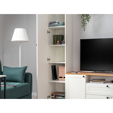 - Элегантная гостиная Остин объединяет несколько удобных элементов для хранения. Рамочные фасады с контрастными ручками отлично сочетаются с разными интерьерными стилями. Внутри найдется место для любых нужных вещей: от игровой приставки и наушников до коллекции книг и теплых пледов. В комплект входят (ВхШхГ): Шкаф, 2 шт.: 229,8 х 40 х 41,8 см. ТВ-тумба: 60,8 х 160 х 41,9 см. Настенная полка: 21,6 х 120 х 20 см. Характеристики: Материал: ЛДСП, МДФ. Материал ручек: пластик. Механизм открывания: распашной. Тип направляющих: шариковые с доводчиком. Ориентация сборки: универсальная. Максимальная нагрузка на полку: 8 кг. Максимальная нагрузка на ящик: 5 кг. Петли оснащены доводчиком. Опоры регулируются по высоте.