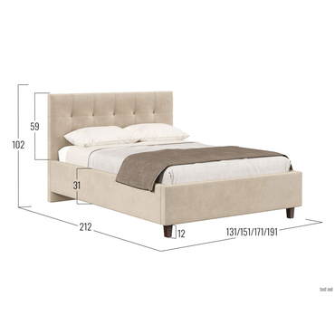 Двуспальная кровать todzal Рони Кремовый, велюр 160х200 см ,