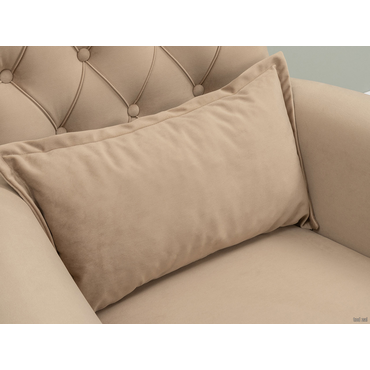 - Очаровательное кресло Мэрион в классическом исполнении гармонично дополнит интерьеры в стилях прованс и классика. Изящная спинка декорирована каретной стяжкой с большими пуговицами, а мягкие подлокотники имеют утонченную форму. Для наибольшего удобства в комплект входит мягкая приспинная подушка. Характеристики: Нагрузка на одно посадочное место: 100 кг. Посадочное место (ВхГ): 44 х 42 см. Посадочное место без подушки (ШхГ): 53 х 56 см. Декоративная подушка (ВхШ): 56 х 30 см. Материал каркаса: ЛДСП, фанера и брус хвойных пород. Наполнение мягких элементов: пенополиуретан, плоские пружины «змейка», спанбонд 80, периотек. Ширина сиденья: у спинки 43 см, ближе к краю 54 см. Глубина сиденья: до спинки 56 см, до подушки 46 см. Материал ножек: пластик / массив дерева. Высота передних ножек: 12 см. Высота задних ножек: 10 см. Преимущества: высокие ножки из массива дерева — стильный акцент и надежная опора для кресла. Специальная пропитка защищает материал от влаги и других неблагоприятных факторов. Высокие ножки упрощают уборку пола и делают конструкцию визуально легче; ткань со всех сторон — кресло со всех сторон обит одним материалом, поэтому будет эстетично смотреться даже в центре комнаты; антикоготь — гладкая текстура ткани более устойчива к появлению зацепок, в отличие от материалов с выраженным плетением. Кроме того, она легко чистится от шерсти; подушки под спину — дополнительные подушки позволяют комфортно расположиться на кресле, регулируя глубину посадки; ткань на — создайте уникальный облик кресла, сочетая различные оттенки и текстуры ткани.