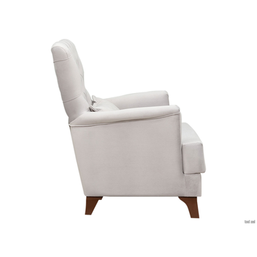 - Очаровательное кресло Мэрион в классическом исполнении гармонично дополнит интерьеры в стилях прованс и классика. Изящная спинка декорирована каретной стяжкой с большими пуговицами, а мягкие подлокотники имеют утонченную форму. Для наибольшего удобства в комплект входит мягкая приспинная подушка. Характеристики: Нагрузка на одно посадочное место: 100 кг. Посадочное место (ВхГ): 44 х 42 см. Посадочное место без подушки (ШхГ): 53 х 56 см. Декоративная подушка (ВхШ): 56 х 30 см. Материал каркаса: ЛДСП, фанера и брус хвойных пород. Наполнение мягких элементов: пенополиуретан, плоские пружины «змейка», спанбонд 80, периотек. Ширина сиденья: у спинки 43 см, ближе к краю 54 см. Глубина сиденья: до спинки 56 см, до подушки 46 см. Материал ножек: пластик / массив дерева. Высота передних ножек: 12 см. Высота задних ножек: 10 см. Преимущества: высокие ножки из массива дерева — стильный акцент и надежная опора для кресла. Специальная пропитка защищает материал от влаги и других неблагоприятных факторов. Высокие ножки упрощают уборку пола и делают конструкцию визуально легче; ткань со всех сторон — кресло со всех сторон обит одним материалом, поэтому будет эстетично смотреться даже в центре комнаты; антикоготь — гладкая текстура ткани более устойчива к появлению зацепок, в отличие от материалов с выраженным плетением. Кроме того, она легко чистится от шерсти; подушки под спину — дополнительные подушки позволяют комфортно расположиться на кресле, регулируя глубину посадки; ткань на — создайте уникальный облик кресла, сочетая различные оттенки и текстуры ткани.