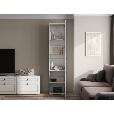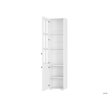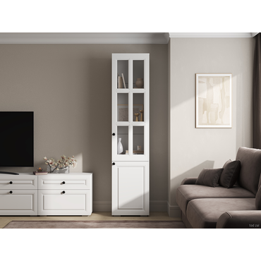 - Шкаф-витрина Северина разнообразит интерьер и создаст дополнительное место для хранения. Стеклянные вставки позволят продемонстрировать красивую посуду и декор, а глухая дверца скроет от посторонних глаз предметы обихода. Модель достаточно компактная, поэтому органично смотрится даже в небольшой комнате. Характеристики: Материал корпуса: ЛДСП. Материал фасадов: МДФ, стекло. Материал ручек: металл. Максимальная нагрузка на деревянную полку: 10 кг. Максимальная нагрузка на стеклянную полку: 2 кг. Дверцы навешиваются на любую сторону.