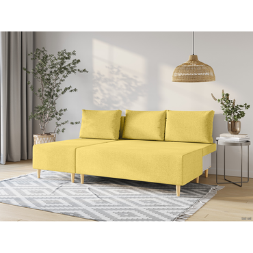 - Особенность углового дивана Нильс — отсутствие подлокотников. Такая конструкция увеличивает количество посадочных мест и экономит площадь комнаты. Благодаря высоким ножкам диван смотрится визуально легко, поэтому подходит для небольшой гостиной или студии. Его можно установить в любой точке комнаты для зонирования пространства. Несложный в использовании механизм трансформации превращает диван в удобную полутороспальную кровать. Под сиденьем расположен бельевой короб, где можно спрятать теплое одеяло и другие вещи. Характеристики: Размер спального места: 121х202 см. Механизм трансформации: еврокнижка. Нагрузка на одно спальное место: 110 кг. Нагрузка на одно посадочное место: 110 кг. Посадочное место (ВхГ): 41х101 см. Приспинные подушки (ВхШхГ): 45х65х18 см (3 шт.). Размер ящика (ВхШхГ): 18,5х123х50 см. Материал основания: массив, фанера, ДСП, ДВП. Наполнитель: пенополиуретан. Наполнитель подушек: чипсы пенополиуретана. Тип каркаса: деревянный. Материал ножек: дерево. Высота ножек: 12 см. Преимущества: механизм «еврокнижка» — надежный и простой в использовании механизм. Спальное место без стыков, которое располагается вдоль. Чтобы трансформировать диван, нужно выдвинуть сиденье вперед и опустить спинку на освободившееся место. Подходит для ежедневной эксплуатации; двойной ящик для хранения — в коробе с перегородкой удобно хранить постельные принадлежности, сезонные вещи и другие предметы отдельно друг от друга; ткань со всех сторон — диван со всех сторон обит одним материалом, поэтому будет эстетично смотреться даже в центре комнаты. Идеален для зонирования пространства и больших помещений; высокие деревянные ножки — стильный акцент и надежная опора для дивана. Специальная пропитка защищает материал от влаги и других неблагоприятных факторов. Высокие ножки упрощают уборку пола и делают конструкцию визуально легче.; универсальный угол — угловая часть дивана располагается справа и слева, позволяя легко обновить интерьер и адаптировать его к новому пространству.
