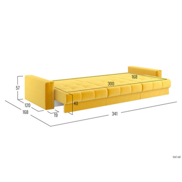 - Прямой диван Клермон Макси — основательная модель для комфортабельного отдыха. В просторной гостиной диван можно использовать для зонирования пространства, установив в любой точке комнаты. Приспинные и декоративные подушки позволяют устроиться максимально удобно, независимо от роста и комплекции сидящего. Надежный механизм трансформации легко превращает диван в ровное спальное место. Благодаря продуманному наполнению его можно использовать для ежедневного сна. Модель комплектуется вместительным коробом для хранения постельных принадлежностей. Характеристики: Размер спального места: 168 х 300 см. Механизм трансформации: тик-так. Нагрузка на одно спальное место: 120 кг. Нагрузка на одно посадочное место: 90 кг. Посадочное место (ВхГ): 40 х 70 см. Декоративные подушки (ВхШхГ): 40 х 50 х 20 см (3 шт.). Размер приспинных подушек: 100 х 45 х 25 см (3 шт.). Размер спального места в сложенном виде: 300 х 100 см. Габариты ящика для белья (ВхШхГ), 3 шт.: 19 х 97 х 102 см. в разложенном виде: 57 х 341 х 168 см. Размер подлокотника: 57 х 19 см. Высота спинки от сиденья: 26 см. Глубина сиденья без подушек: 100 см. Высота без подушек: 68 см. Материал основания: независимый пружинный блок. Наполнитель: пенополиуретан. Наполнитель подушек: синтепух, поролоновая крошка. Материал каркаса: ДСП, ДВП, ДВПО, ЛДСП, ФК. Материал ножек: пластик. Высота ножек: 2,5 см. Преимущества: механизм трансформации «Тик-так»: система трансформации «тик-так» позволяет быстро и легко разложить диван. Сиденье нужно немного приподнять, потянуть вверх и на себя, а далее опустить спинку. Таким образом, получается ровное и просторное спальное место; независимый пружинный блок: автономные пружины в индивидуальных тканевых чехлах обеспечивают ортопедический эффект и точечно распределяют вес, исключая скрипы и шорохи; ящик с перегородкой: в коробе с перегородкой удобно хранить постельные принадлежности, сезонные вещи и другие предметы отдельно друг от друга; ткань со всех сторон: диван со всех сторон обит одним материалом, поэтому будет эстетично смотреться даже в центре комнаты. Идеален для зонирования пространства и больших помещений. спальное место без раскладывания: глубина модели позволяет организовать полноценное спальное место для одного человека, не раскладывая диван; большое спальное место: в разложенном виде не уступает полноценной двуспальной кровати. Можно с комфортом смотреть телевизор всей семьей или в компании друзей; широкие подлокотники: позволяют отдохнуть с повышенным комфортом. А еще их можно использовать как дополнительную поверхность для ноутбука и прочих мелочей; антикоготь — гладкая текстура ткани более устойчива к появлению зацепок, в отличие от материалов с выраженным плетением. Кроме того, она легко чистится от шерсти; подушки под спину: дополнительные подушки позволяют комфортно расположиться на диване, регулируя глубину посадки. Обратите внимание, каждый модуль дивана раскладывается отдельно.