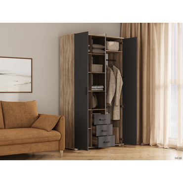 Распашной шкаф Мебелони Вегас Дуб Каньон / Графит Дуб Каньон / Графит ,