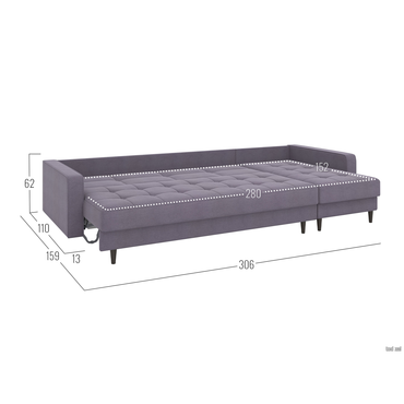 - Угловой диван с оттоманкой Санфорд Макси удачно сочетается с разными интерьерными стилями. Оттоманка позволяет отдохнуть в положении полулежа, а объемные подушки — устроиться с максимальным комфортом. В разложенном виде образуется ровное спальное место с небольшой планкой, которая защищает от соприкосновения со стеной. Высокий матрас на основе пружинного блока создает оптимальные условия для ежедневного сна. Прочный металлический каркас — залог долговечности, а бельевой короб — еще одно преимущество модели. Характеристики: Размер спального места: 152х280 см. Механизм трансформации: тик-так. Нагрузка на одно спальное место: 120 кг. Нагрузка на одно посадочное место: 100 кг. Посадочное место основной части с подушками (ВхГ): 45 х 57 см. Посадочное место основной части без подушек (ШхГ): 200 х 82 см. Глубина посадочного места оттоманки с подушками: 127 см. Глубина посадочного места оттоманки без подушек: 152 см. Декоративные подушки (ВхШхГ): 40 х 60 х 12 см (2 шт.). Приспинные подушки (ВхШ): 48 х 100 см (2 шт.) Приспинная подушка (ВхШ): 48 х 80 см (1 шт.) Габариты дивана общие в разложенном виде (ВхШхГ): 62 х 306 х 159 см. Габариты ящика для белья основной (ВхШхГ): 14 х 179 х 57 см. Габариты ящика для белья в оттоманке (ВхШхГ): 13 х 142,5 х 72 см. Высота спинки от посадочного места: 48 см. Размер подлокотника(ВхШхГ): 62 х 13 х 110 см. Материал основания: металлическая сетка. Наполнение: независимый пружинный блок. Наполнение подушек: полиэфирное волокно, крошка пенополиуретана. Материал ножек: пластик. Высота ножек: 12 см. Преимущества: механизм трансформации «тик-так» — система трансформации «тик-так» позволяет быстро и легко разложить диван. Сиденье нужно немного приподнять, потянуть вверх и на себя, а далее опустить спинку. Таким образом, получается ровное и просторное спальное место; металлический каркас — выдерживает высокие нагрузки, продлевает срок службы механизма и сохраняет прочность даже при ежедневном использовании; комфортный сон и защита стены — защищает спящего от соприкосновений с холодной стеной, а настенное покрытие — от потертостей и пятен; спальное место без раскладывания — глубина модели позволяет организовать полноценное спальное место для одного человека, не раскладывая диван; независимый пружинный блок — автономные пружины в индивидуальных тканевых чехлах обеспечивают ортопедический эффект и точечно распределяют вес, исключая скрипы и шорохи; система хранения — ящики предусмотрены и в оттоманке, и в основной части дивана. Внутри можно разместить любые вещи: от постельных принадлежностей и сезонной одежды до игрушек и коробок с обувью; съемный чехол — пластиковый кант вшит в чехол, за счет чего он крепится к каркасу. Можно снять для чистки, ремонта или замены на новый, сохранив при этом свой любимый диван; универсальный угол — угловая часть может располагаться как справа, так и слева. Это позволяет легко обновить интерьер и адаптировать диван к новому пространству; высокие ножки — ножки позволяют легко убирать и содержать в чистоте пространство под диваном, а также свободно заезжать роботу-пылесосу; подушки под спину — дополнительные подушки позволяют комфортно расположиться на диване, регулируя глубину посадки; ткань на — создайте уникальный облик дивана, сочетая различные оттенки и текстуры ткани.