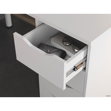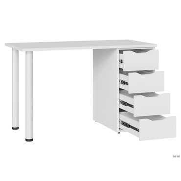 - Письменный стол Адлер станет основой рабочего уголка в офисе или квартире. Широкая столешница позволяет комфортно разместить лампу, органайзеры, компьютер или ноутбук. Для остальных принадлежностей предусмотрены удобные выдвижные ящики. Благодаря универсальному дизайну стол отлично сочетается с другой мебелью. Характеристики: Материал столешницы: ЛДСП 2,2 см. Материал ножек: металл. Диаметр ножек: 6 см. Тип направляющих: шариковые. Максимальная нагрузка на столешницу: 20 кг. Максимальная нагрузка на ящик: 5 кг. Ориентация сборки: универсальная. Расстояние от края столешницы до центра опоры: 10,15 х 10,15 см. Преимущества: шариковые направляющие — позволяют выдвинуть ящик на всю глубину, облегчая поиск нужной вещи. Плавное скольжение обеспечивает комфортную эксплуатацию механизма и продлевает срок службы мебели; регулируемый подпятник — высоту опор можно менять в диапазоне трех сантиметров, чтобы компенсировать незначительные неровности пола; универсальная сборка — расположение тумбы может быть с любой стороны столешницы. Это делает стол одинаково удобным для правшей и для левшей, а также позволяет адаптировать его для разных планировок; лаконичный дизайн — в конструкции стола сделан акцент на простые линии и минималистичность. Такой дизайн легко сочетается с другой современной мебелью и не перегружает интерьер. Обратите внимание, регулируемый подпятник позволяет увеличить высоту стола до 3 см.