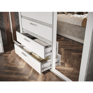 - Дизайн и конструкция распашного шкафа Амбер продуманы до мельчайших деталей. Комбинированное наполнение с широкими полками и ящиками, а также двумя нишами для вешалок — оптимальный вариант для хранения предметов гардероба и других нужных вещей. Зеркала на фасадах — еще одно преимущество модели: помимо основной функции, они делают комнату визуально светлее и просторнее. Характеристики: Материал корпуса: ЛДСП. Материал фасадов: ЛДСП, зеркало. Материал ручек: пластик. Тип направляющих: шариковые. Тип штанг: продольные. Ориентация сборки: только так, как показано на изображении. Шкаф требует много места для сборки. Конструкция шкафа предполагает сборку в горизонтальном положении. Для того, чтобы шкаф можно было поднять из положения «лежа», высота потолков должна быть больше высоты шкафа не менее, чем на 10 см. Сборка шкафа в вертикальном положении гораздо более трудоемкая и часто приводит к повреждению деталей.