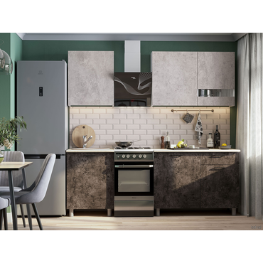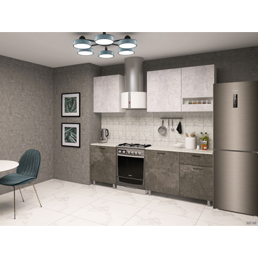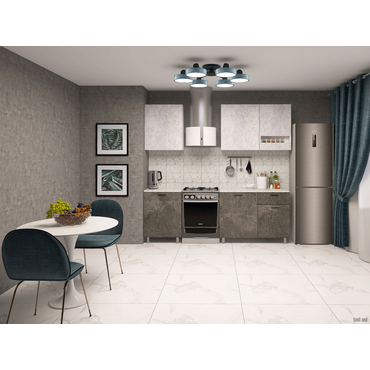 Кухонный гарнитур СВ-Мебель Брауни 170 см Белый / Цемент светлый / Цемент темный / Антарес Со столешницей ,