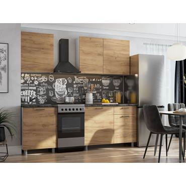 Кухонный гарнитур СВ-Мебель Страйк 170 см Белый / Дуб золотой / Черный матовый Со столешницей ,