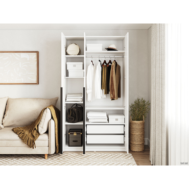 - Распашной шкаф Арно 3 двери организует удобное хранение всего необходимого. Узкие вытянутые ручки выполняют как основную, так и декоративную функцию. В комплектации с ящиками модель подходит для любых предметов гардероба: от верхней одежды до белья и аксессуаров. Стандартное наполнение оставляет больше места для габаритных вещей. В комплектацию С антресолью входят (ВхШхГ): Шкаф: 221,6 х 120,1 х 50,6 см. Антресоль: 38,4 х 120,1 х 50,6 см. Характеристики: Материал: ЛДСП. Материал ручек: пластик. Тип направляющих: шариковые. Тип штанги: продольная. Максимальная нагрузка на полку: 5 кг. Ориентация сборки: только так, как показано на изображении. Дверцы шкафа оснащены доводчиками. Дверцы антресоли оснащены толкателем, открываются нажатием. Габариты антресоли (ВхШхГ): 38,4 х 120,1 х 50,6 см. Обратите внимание, штанга есть во всех комплектациях гардеробной системы.