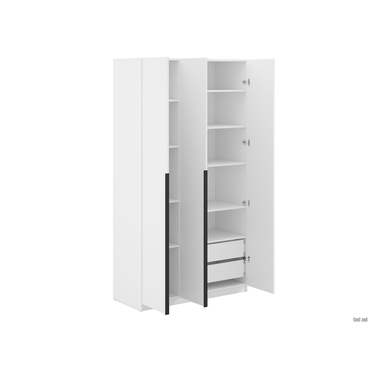 - Распашной шкаф Арно 3 двери организует удобное хранение всего необходимого. Узкие вытянутые ручки выполняют как основную, так и декоративную функцию. В комплектации с ящиками модель подходит для любых предметов гардероба: от верхней одежды до белья и аксессуаров. Стандартное наполнение оставляет больше места для габаритных вещей. В комплектацию С антресолью входят (ВхШхГ): Шкаф: 221,6 х 120,1 х 50,6 см. Антресоль: 38,4 х 120,1 х 50,6 см. Характеристики: Материал: ЛДСП. Материал ручек: пластик. Тип направляющих: шариковые. Тип штанги: продольная. Максимальная нагрузка на полку: 5 кг. Ориентация сборки: только так, как показано на изображении. Дверцы шкафа оснащены доводчиками. Дверцы антресоли оснащены толкателем, открываются нажатием. Габариты антресоли (ВхШхГ): 38,4 х 120,1 х 50,6 см. Обратите внимание, штанга есть во всех комплектациях гардеробной системы.