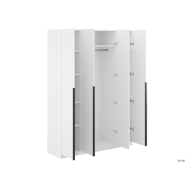 - Распашной шкаф Арно 4 двери — вместительная модель, с которой легко организовать максимально удобную систему хранения. Можно выбрать один из двух вариантов наполнения: с просторной нишей по центру или с ящиками для белья и аксессуаров. В дизайне сделан акцент на простую геометрию, которую подчеркивают тонкие контрастные ручки. В комплектацию С антресолью входят (ВхШхГ): Шкаф: 221,6 х 160,1 х 50,6 см. Антресоль: 38,4 х 160,1 х 50,6 см. Характеристики: Материал: ЛДСП. Материал ручек: пластик. Тип направляющих: шариковые. Тип штанги: продольная. Максимальная нагрузка на полку: 5 кг. Ориентация сборки: только так, как показано на изображении. Дверцы шкафа оснащены доводчиками. Дверцы антресоли оснащены толкателем, открываются нажатием. Габариты антресоли (ВхШхГ): 38,4 х 80,1 х 50,6 см. Обратите внимание, штанга есть во всех комплектациях гардеробной системы. Шкаф требует много места для сборки. Конструкция шкафа предполагает сборку в горизонтальном положении. Для того, чтобы шкаф можно было поднять из положения «лежа», высота потолков должна быть больше высоты шкафа не менее, чем на 10 см. Сборка шкафа в вертикальном положении гораздо более трудоемкая и часто приводит к повреждению деталей.