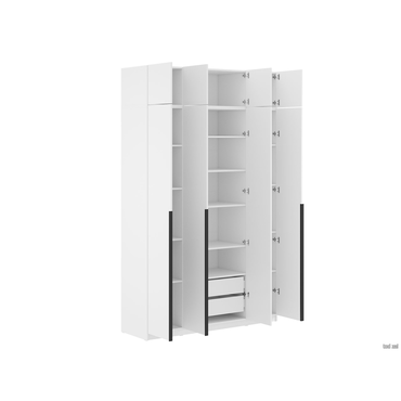 - Распашной шкаф Арно 4 двери — вместительная модель, с которой легко организовать максимально удобную систему хранения. Можно выбрать один из двух вариантов наполнения: с просторной нишей по центру или с ящиками для белья и аксессуаров. В дизайне сделан акцент на простую геометрию, которую подчеркивают тонкие контрастные ручки. В комплектацию С антресолью входят (ВхШхГ): Шкаф: 221,6 х 160,1 х 50,6 см. Антресоль: 38,4 х 160,1 х 50,6 см. Характеристики: Материал: ЛДСП. Материал ручек: пластик. Тип направляющих: шариковые. Тип штанги: продольная. Максимальная нагрузка на полку: 5 кг. Ориентация сборки: только так, как показано на изображении. Дверцы шкафа оснащены доводчиками. Дверцы антресоли оснащены толкателем, открываются нажатием. Габариты антресоли (ВхШхГ): 38,4 х 80,1 х 50,6 см. Обратите внимание, штанга есть во всех комплектациях гардеробной системы. Шкаф требует много места для сборки. Конструкция шкафа предполагает сборку в горизонтальном положении. Для того, чтобы шкаф можно было поднять из положения «лежа», высота потолков должна быть больше высоты шкафа не менее, чем на 10 см. Сборка шкафа в вертикальном положении гораздо более трудоемкая и часто приводит к повреждению деталей.
