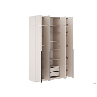 - Распашной шкаф Арно 4 двери — вместительная модель, с которой легко организовать максимально удобную систему хранения. Можно выбрать один из двух вариантов наполнения: с просторной нишей по центру или с ящиками для белья и аксессуаров. В дизайне сделан акцент на простую геометрию, которую подчеркивают тонкие контрастные ручки. В комплектацию С антресолью входят (ВхШхГ): Шкаф: 221,6 х 160,1 х 50,6 см. Антресоль: 38,4 х 160,1 х 50,6 см. Характеристики: Материал: ЛДСП. Материал ручек: пластик. Тип направляющих: шариковые. Тип штанги: продольная. Максимальная нагрузка на полку: 5 кг. Ориентация сборки: только так, как показано на изображении. Дверцы шкафа оснащены доводчиками. Дверцы антресоли оснащены толкателем, открываются нажатием. Габариты антресоли (ВхШхГ): 38,4 х 80,1 х 50,6 см. Обратите внимание, штанга есть во всех комплектациях гардеробной системы. Шкаф требует много места для сборки. Конструкция шкафа предполагает сборку в горизонтальном положении. Для того, чтобы шкаф можно было поднять из положения «лежа», высота потолков должна быть больше высоты шкафа не менее, чем на 10 см. Сборка шкафа в вертикальном положении гораздо более трудоемкая и часто приводит к повреждению деталей.