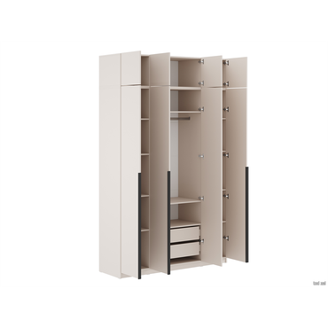 - Распашной шкаф Арно 4 двери — вместительная модель, с которой легко организовать максимально удобную систему хранения. Можно выбрать один из двух вариантов наполнения: с просторной нишей по центру или с ящиками для белья и аксессуаров. В дизайне сделан акцент на простую геометрию, которую подчеркивают тонкие контрастные ручки. В комплектацию С антресолью входят (ВхШхГ): Шкаф: 221,6 х 160,1 х 50,6 см. Антресоль: 38,4 х 160,1 х 50,6 см. Характеристики: Материал: ЛДСП. Материал ручек: пластик. Тип направляющих: шариковые. Тип штанги: продольная. Максимальная нагрузка на полку: 5 кг. Ориентация сборки: только так, как показано на изображении. Дверцы шкафа оснащены доводчиками. Дверцы антресоли оснащены толкателем, открываются нажатием. Габариты антресоли (ВхШхГ): 38,4 х 80,1 х 50,6 см. Обратите внимание, штанга есть во всех комплектациях гардеробной системы. Шкаф требует много места для сборки. Конструкция шкафа предполагает сборку в горизонтальном положении. Для того, чтобы шкаф можно было поднять из положения «лежа», высота потолков должна быть больше высоты шкафа не менее, чем на 10 см. Сборка шкафа в вертикальном положении гораздо более трудоемкая и часто приводит к повреждению деталей.