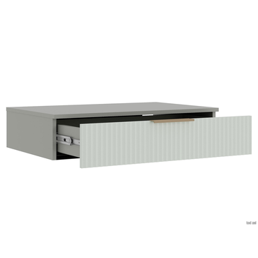 - Детская подвесная тумба-консоль Джерси — компактная модель для хранения разных мелочей. Фасад украшен вертикальной фрезеровкой и дополнен стильной акцентной ручкой. Тумба смотрится очень привлекательно и создает дополнительную поверхность для декора, настольной лампы или других нужных вещей. Характеристики: Материал корпуса: ЛДСП 16 мм. Материал фасада: МДФ в пленке ПВХ 16 мм. Материал ручки: пластик. Тип направляющих: шариковые. Внутренние габариты ящика (ВхШхГ): 10,6 х 71,2 х 36,8 см. Максимальная нагрузка на ящик: 8 кг. Обратите внимание, тумбу следует обязательно крепить к боковине рядом стоящего шкафа межсекционными стяжками.