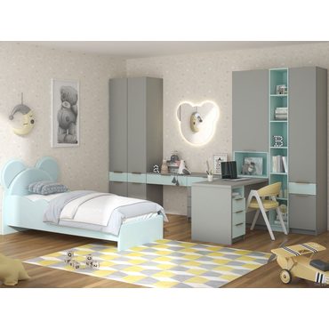 Детская кровать МК СТИЛЬ Джерси Мишка Скай матовый / Мята, велюр Скай матовый / Мята, велюр ,