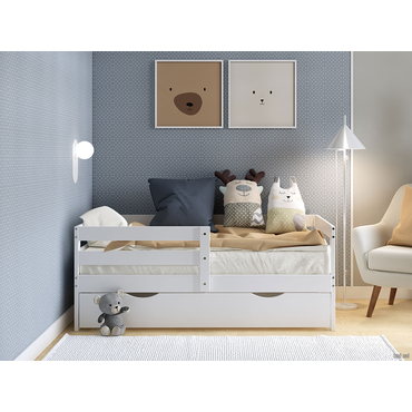 Детская кровать Лузалес Ош Белый, массив сосны С ящиком ,