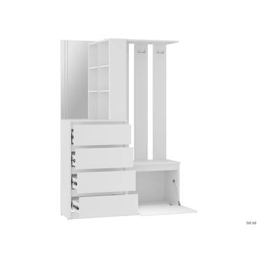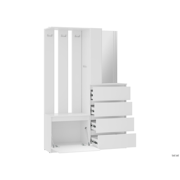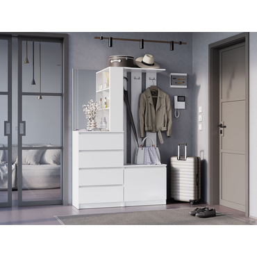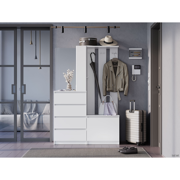 - Прихожая Симпл — идеальное решение для хранения одежды и обуви. Дизайн сочетает в себе четкие линии, простоту и функциональность. Модель добавит входной группе гармонии и упорядоченности. Удобные ящики и крючки для верхней одежды и сумок позволяют аккуратно расположить предметы гардероба. Характеристики: Материал: ЛДСП. Механизм открывания: откидной. Тип направляющих: шариковые. Вместимость обувницы: 3 пары. Максимальная нагрузка на ящик: 5 кг. Ориентация сборки: универсальная. Требуется крепление к стене. Крепежи входят в комплект.