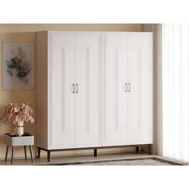 - Распашной шкаф Эвора — вместительное решение для хранения предметов гардероба, белья и других принадлежностей. Два отделения со штангами для вешалок позволяют разделить верхнюю и повседневную одежду. Фасады украшены фрезеровкой и стильными ручками, которые придают модели особый шарм. Характеристики: Материал корпуса: ЛДСП. Материал фасадов: МДФ, окрашенная лаком. Материал ручек: металл. Тип штанг: продольные. Максимальная нагрузка на полку: 10 кг. Ориентация сборки: только так, как показано на изображении. Высота ножек: 20 см. Шкаф требует много места для сборки. Конструкция шкафа предполагает сборку в горизонтальном положении. Для того, чтобы шкаф можно было поднять из положения «лежа», высота потолков должна быть больше высоты шкафа не менее, чем на 10 см. Сборка шкафа в вертикальном положении гораздо более трудоемкая и часто приводит к повреждению деталей. Обратите внимание, преимущество данной коллекции — крашеные МДФ-фасады, покрытые матовым лаком. Они отличаются прочностью, экологичностью и уникальным внешним видом благодаря глубокому проникновению краски в структуру плиты. Матовая текстура без «пальчикового» эффекта придает мебели особую эстетику, а также обеспечивает легкий уход и долговечность.
