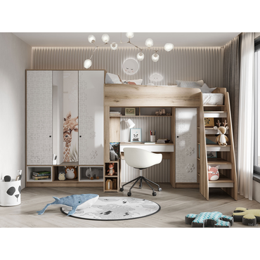 Детский шкаф Стендмебель Киви Дуб Делано / Белый пазл / Зеркало Дуб Делано / Белый пазл / Зеркало ,
