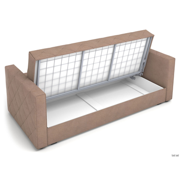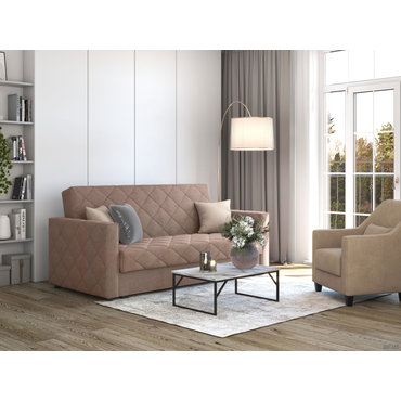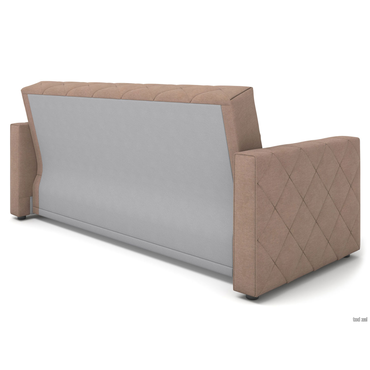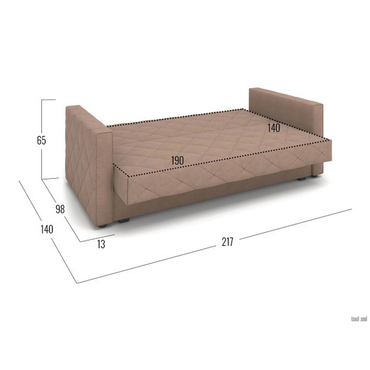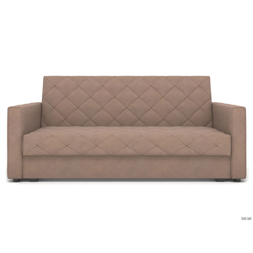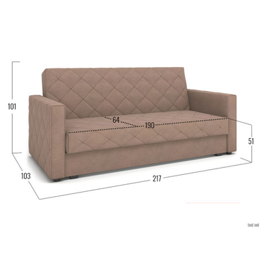 - Прямой диван Бонни станет любимым местом отдыха. Три положения спинки позволяют комфортно расположиться сидя, полусидя или лежа. Ромбовидная стежка придает дивану особую привлекательность. Модель достаточно компактная, поэтому украсит даже небольшую гостиную. Механизм трансформации подходит для ежедневной многократной эксплуатации. Особенность дивана — идеально ровное спальное место с высоким анатомическим матрасом. Ламинированный бельевой ящик создает дополнительное место для хранения. Съемный чехол облегчает уход за обивкой. Характеристики: Размер спального места (ШхГ): 140 х 190 см. Размер спального места в сложенном виде: 64 х 190 см. Габариты дивана в разложенном виде (ВхШхГ): 65 х 190 х 140 см. Механизм трансформации: клик-кляк. Нагрузка на одно спальное место: 120 кг. Нагрузка на одно посадочное место: 100 кг. Посадочное место (ВхГ): 51 х 64 см. Высота спинки от посадочного места: 50 см. Габариты ящика для белья (ВхШхГ): 25 х 181 х 78 см. Размер подлокотников (ВхШхГ): 65 х 13 х 98 см. Высота матраса: 15 см. Материал основания: металлическая сетка. Наполнитель: независимый пружинный блок, пенополиуретан. Тип каркаса: металлический. Материал ножек: пластик. Высота ножек: 3,5 см. Преимущества: «клик-кляк» — механизм трансформации «клик-кляк» дает возможность зафиксировать спинку дивана в трех положениях: горизонтальном — для сна, вертикальном — для отдыха сидя и под 45° — положение «релакс»; ящик для хранения — в просторном коробе уместится всё: от постельного белья и объемных подушек до сезонных вещей и коробок с обувью; независимый пружинный блок — каждая пружина находится в отдельном тканевом чехле и не связана с другими. Это обеспечивает точечное распределение нагрузки и оптимальную поддержку каждой части тела. Подходит для ежедневного сна; металлический каркас — выдерживает высокие нагрузки, продлевает срок службы механизма и сохраняет прочность даже при ежедневном использовании; съемный чехол — можно снять для химчистки, ремонта или замены на новый, сохранив при этом любимый диван.