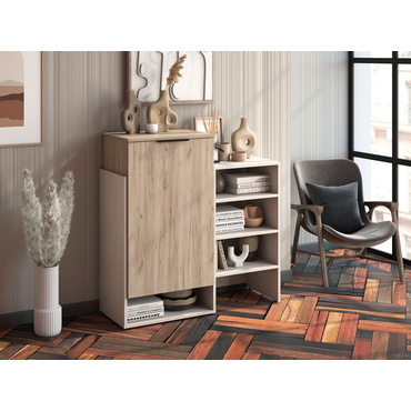 - Комод Бохо подойдет для хранения разных категорий вещей. Разноплановые отделения обеспечат место под книги, керамику и коллекционные предметы. Открытые ниши помогут оживить обстановку предметами декора и комнатными растениями. Фасад с текстурой дерева создает уютный акцент в интерьере. Характеристики: Материал: ЛДСП 16 мм. Материал ручки: металл. Механизм открывания: распашной. Ориентация сборки: универсальная.